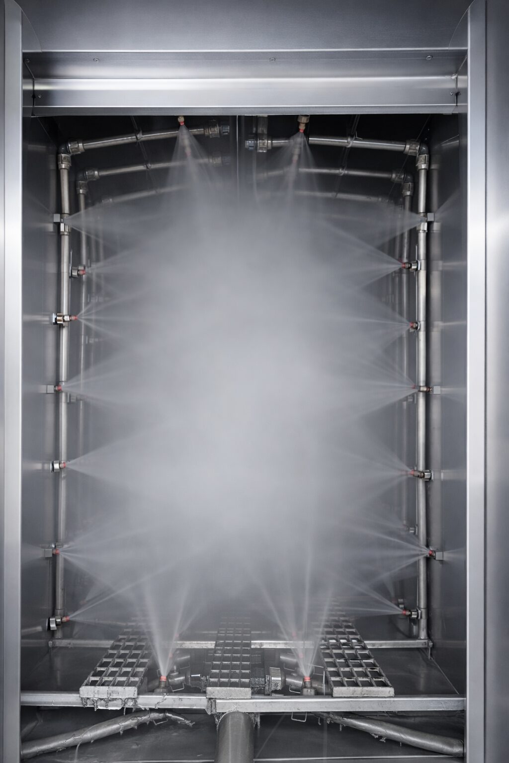 Vi har nyligen bytt pumpar och dysor samt trimmat hela vår förbehandlingsanläggning, vilket har gett oss ett ännu bättre och mer jämnt resultat i rengöringsprocessen i vår pulverlackeringsanläggning. Den optimerade spridningen och det förbättrade trycket säkerställer att varje detalj blir noggrant avfettad och förberedd inför nästa steg. I vår förbehandling använder vi E-CLPS, en miljövänlig och kromfri ytmodifierande behandling som skapar en tunn, aktiv konverteringsfilm på metallytan. Denna behandling förbättrar pulverlackens vidhäftning, ger en jämnare applicering och bidrar samtidigt till ett ökat korrosionsskydd under lackskiktet. Tillsammans ger den uppgraderade utrustningen och vår E-CLPS-process en stabilare produktion och en ännu högre slutkvalitet på våra produkter.